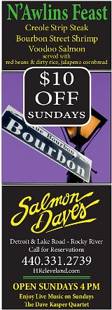 Salmon Dave's Pacific Grille seems right at home perched on a ledge overlooking the Rocky River. True to its namesake, overnight flights from Yukon day boats provide for the freshest wild Alaskan salmon in town. An exotic martini to chill the Pacific-rim influence of the food - the perfect way to enjoy a meal.