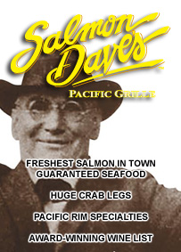 A unique semi-private dining room can accommodate larger parties without the sense of being isolated. The bar area is reminiscent of a Gold Rush Era saloon, and the award-winning wine list provides a source for adventure and discovery. Salmon Dave’s talented chefs and expert staff contribute the final ingredient to a wonderful evening or enjoyable lunch.